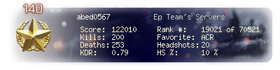 | Kills | 200 | Deaths | 253 | Kill / Death | 0.79 |
