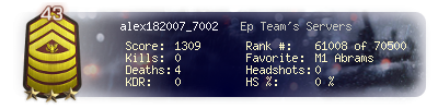 | Headshots | 0 | Suicides | 0 | Headshot / Kill | 0 % |