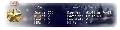 | Headshots | 0 | Suicides | 0 | Headshot / Kill | 0 % |