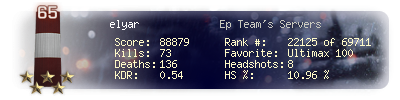 | Kills | 73 | Deaths | 136 | Kill / Death | 0.54 |