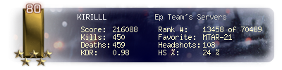| Kills | 450 | Deaths | 459 | Kill / Death | 0.98 |