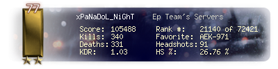 | Headshots | 91 | Suicides | 0 | Headshot / Kill | 26.76 % |