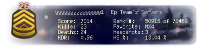 | Headshots | 3 | Suicides | 0 | Headshot / Kill | 13.04 % |