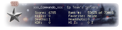 | Headshots | 0 | Suicides | 1 | Headshot / Kill | 0 % |