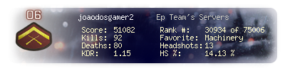 | Headshots | 13 | Suicides | 3 | Headshot / Kill | 14.13 % |