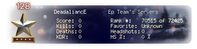 | Headshots | 0 | Suicides | 0 | Headshot / Kill | 0 % |