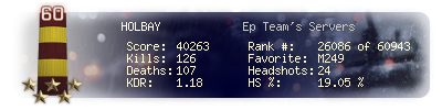 | Headshots | 24 | Suicides | 2 | Headshot / Kill | 19.05 % |