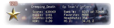| Headshots | 354 | Suicides | 11 | Headshot / Kill | 34.01 % |