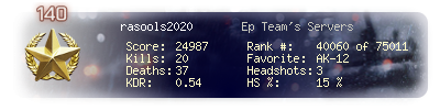| Kills | 20 | Deaths | 37 | Kill / Death | 0.54 |