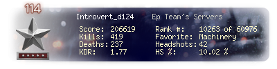 | Kills | 419 | Deaths | 237 | Kill / Death | 1.77 |