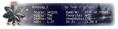 | Kill-streak | 8 | Death-streak | 11 | Team Kills | 0 |