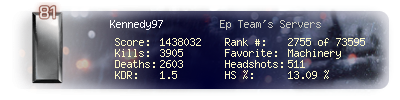 | Kills | 3905 | Deaths | 2603 | Kill / Death | 1.5 |