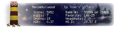 | Kills | 7 | Deaths | 19 | Kill / Death | 0.37 |