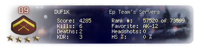 | Headshots | 0 | Suicides | 0 | Headshot / Kill | 0 % |