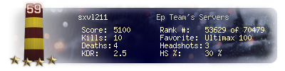 | Headshots | 3 | Suicides | 0 | Headshot / Kill | 30 % |