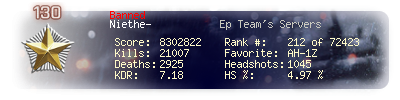 | Kills | 25403 | Deaths | 3482 | Kill / Death | 7.3 |