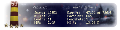 | Kill-streak | 9 | Death-streak | 3 | Team Kills | 0 |