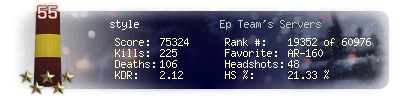 | Headshots | 48 | Suicides | 1 | Headshot / Kill | 21.33 % |