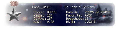 | Kill-streak | 8 | Death-streak | 9 | Team Kills | 0 |