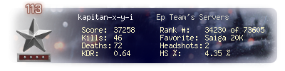 | Kill-streak | 5 | Death-streak | 11 | Team Kills | 0 |