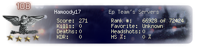 | Kill-streak | 0 | Death-streak | 0 | Team Kills | 0 |