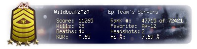 | Kills | 26 | Deaths | 40 | Kill / Death | 0.65 |