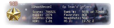 | Headshots | 561 | Suicides | 37 | Headshot / Kill | 19.52 % |