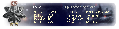 | Kills | 333 | Deaths | 394 | Kill / Death | 0.85 |