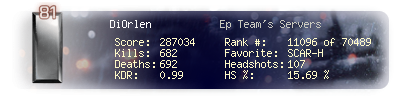 | Kill-streak | 13 | Death-streak | 10 | Team Kills | 0 |