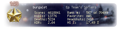 | Kills | 11943 | Deaths | 4321 | Kill / Death | 2.76 |
