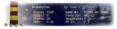 | Headshots | 0 | Suicides | 0 | Headshot / Kill | 0 % |