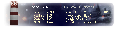 | Headshots | 54 | Suicides | 2 | Headshot / Kill | 13.53 % |