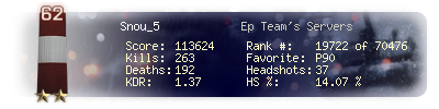 | Headshots | 27 | Suicides | 1 | Headshot / Kill | 12.92 % |