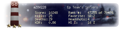 | Kill-streak | 5 | Death-streak | 9 | Team Kills | 0 |