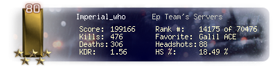 | Kills | 476 | Deaths | 306 | Kill / Death | 1.56 |