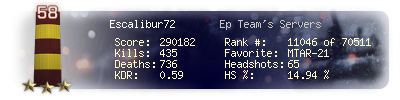 | Headshots | 65 | Suicides | 5 | Headshot / Kill | 14.94 % |