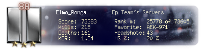 | Headshots | 43 | Suicides | 2 | Headshot / Kill | 20 % |