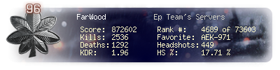 | Headshots | 340 | Suicides | 19 | Headshot / Kill | 17.63 % |
