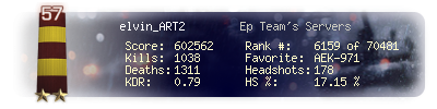 | Kill-streak | 11 | Death-streak | 15 | Team Kills | 1 |