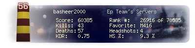 | Headshots | 4 | Suicides | 0 | Headshot / Kill | 9.3 % |