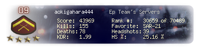 | Headshots | 39 | Suicides | 8 | Headshot / Kill | 25.16 % |
