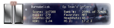 | Headshots | 48 | Suicides | 1 | Headshot / Kill | 17.2 % |