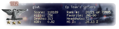 | Kills | 256 | Deaths | 313 | Kill / Death | 0.82 |