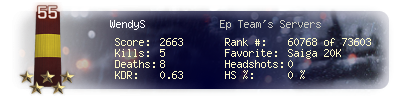 | Headshots | 0 | Suicides | 0 | Headshot / Kill | 0 % |