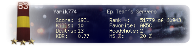 | Kill-streak | 2 | Death-streak | 4 | Team Kills | 0 |