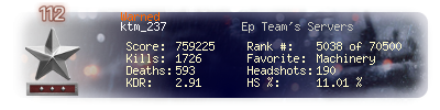 | Kill-streak | 27 | Death-streak | 7 | Team Kills | 0 |