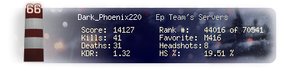 | Headshots | 8 | Suicides | 1 | Headshot / Kill | 19.51 % |