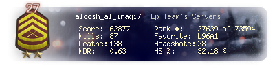 | Headshots | 28 | Suicides | 3 | Headshot / Kill | 32.18 % |