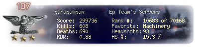 | Kills | 608 | Deaths | 690 | Kill / Death | 0.88 |
