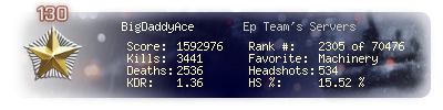 | Headshots | 563 | Suicides | 34 | Headshot / Kill | 15.05 % |